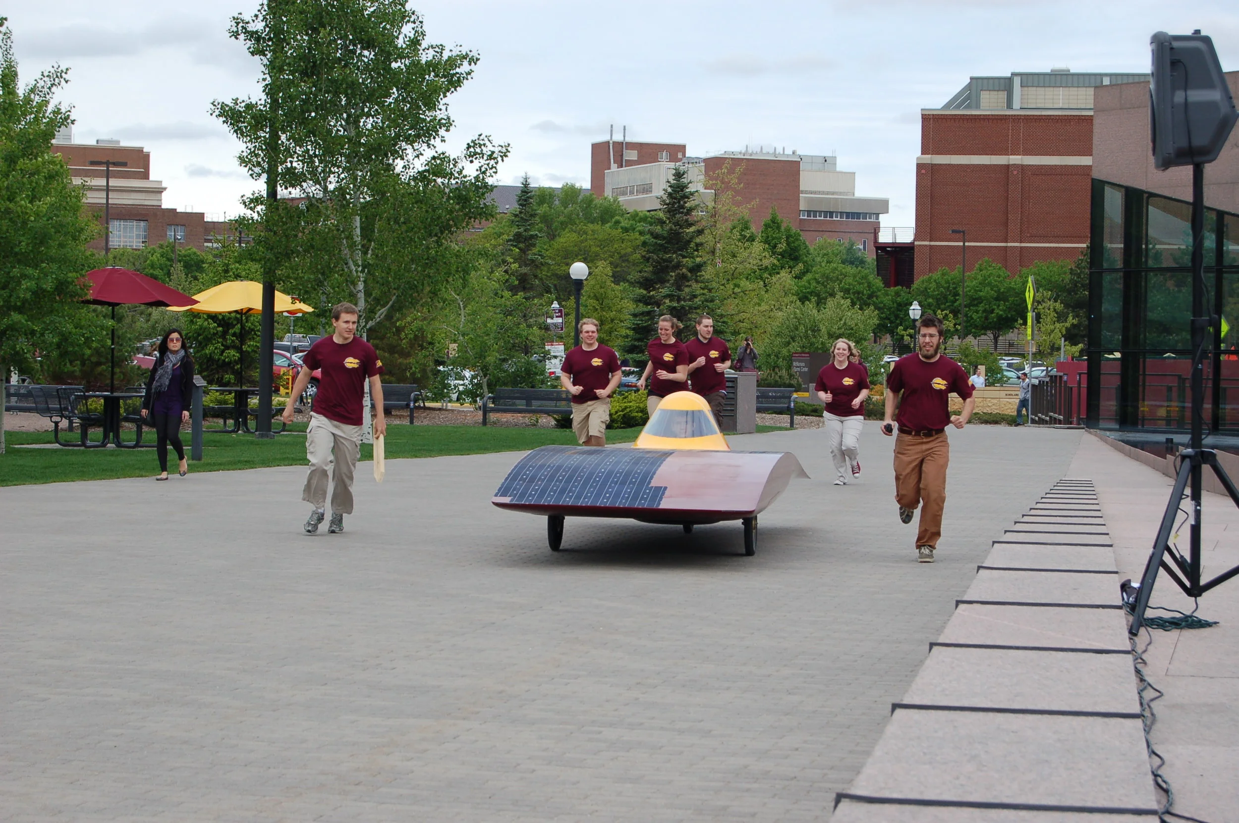 This is the first public viewing of the car in preparation for the 2010 American Solar Challenge, a 1,100-mile race from Tulsa, Okla. to Chicago, Ill., June 19-27. The University of Minnesota is one of only 18 teams from the United States, Canada, Germany and Taiwan competing this year in designing, building and driving a car completely powered by the sun.