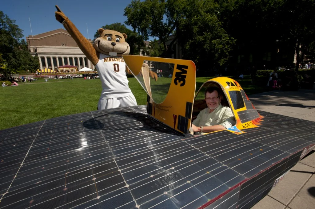 On August 24th, UMNSVP participated in an annual festival that celebrates the University of Minnesota and the accomplishments done throughout the campus. The highlight of the event was a speech by our new president, Kaler. Though, for the solar car team, our highlight was having the new president arrive to the grounds in Centaurus II!